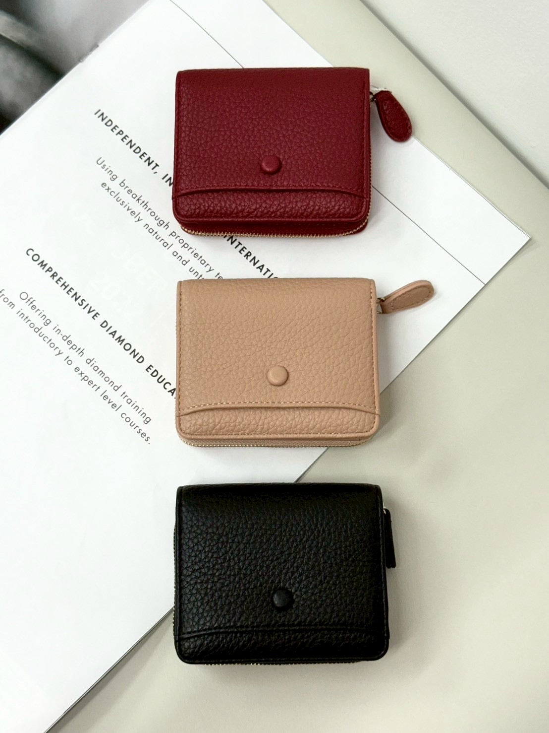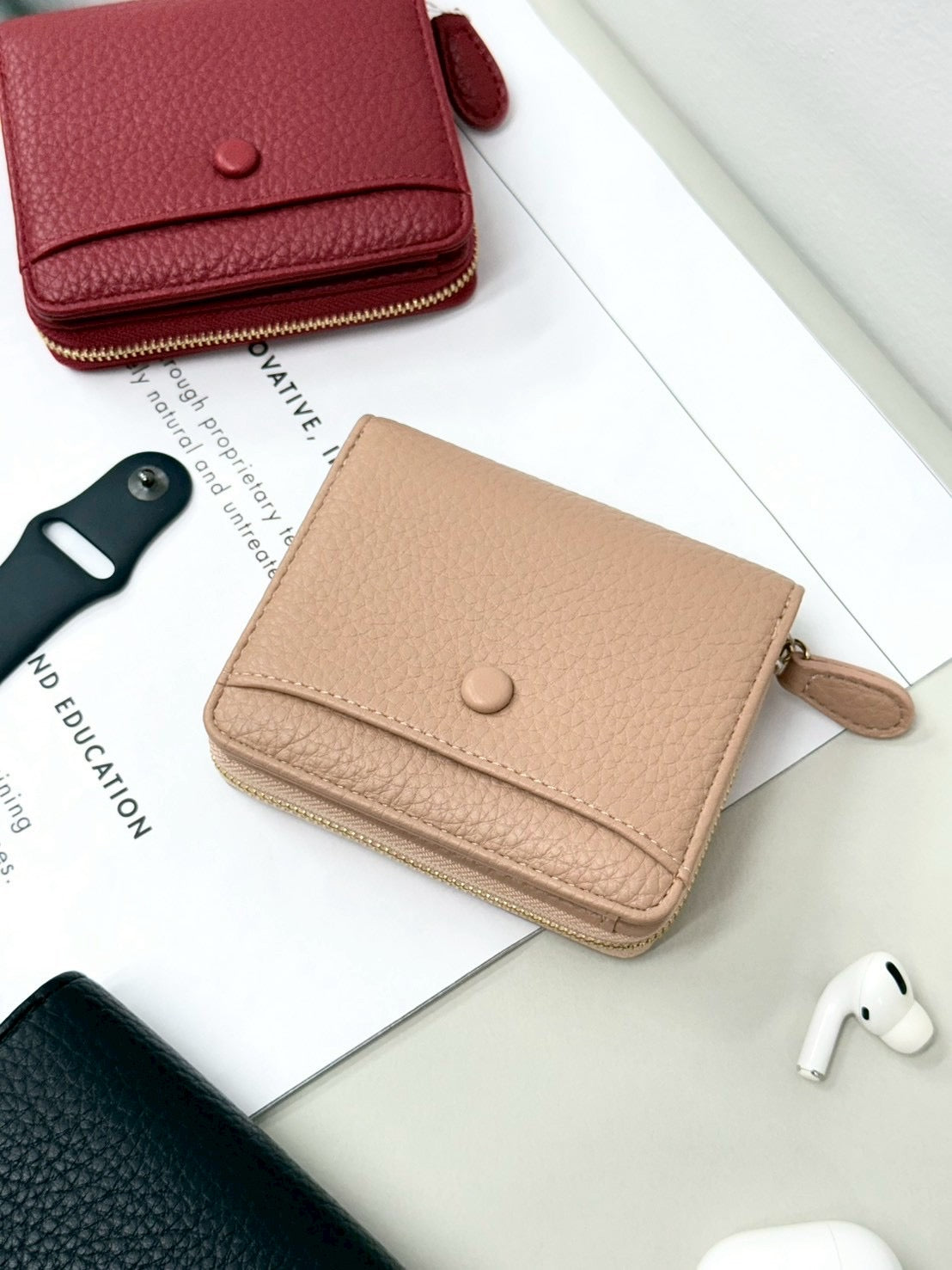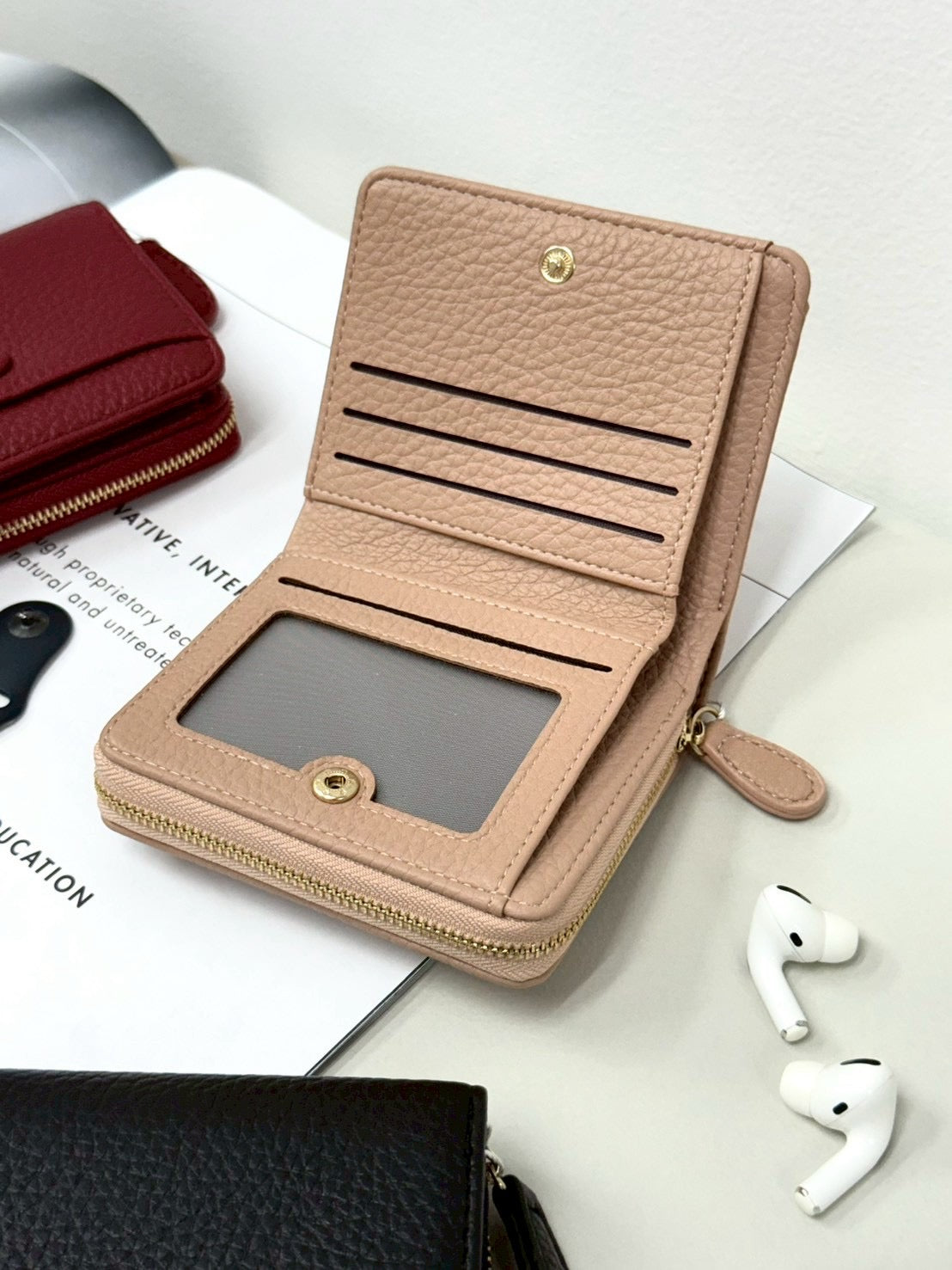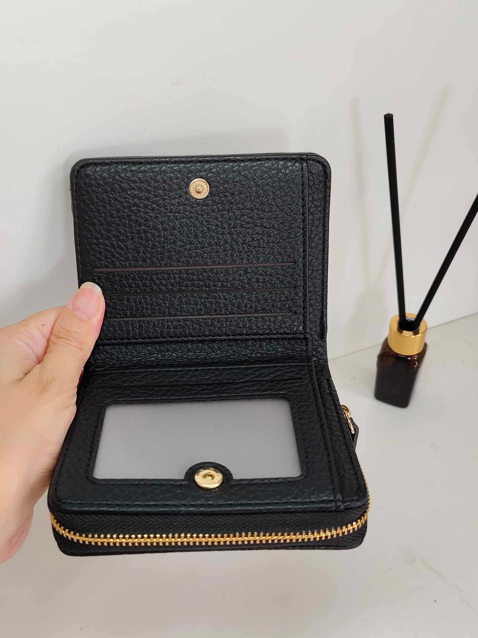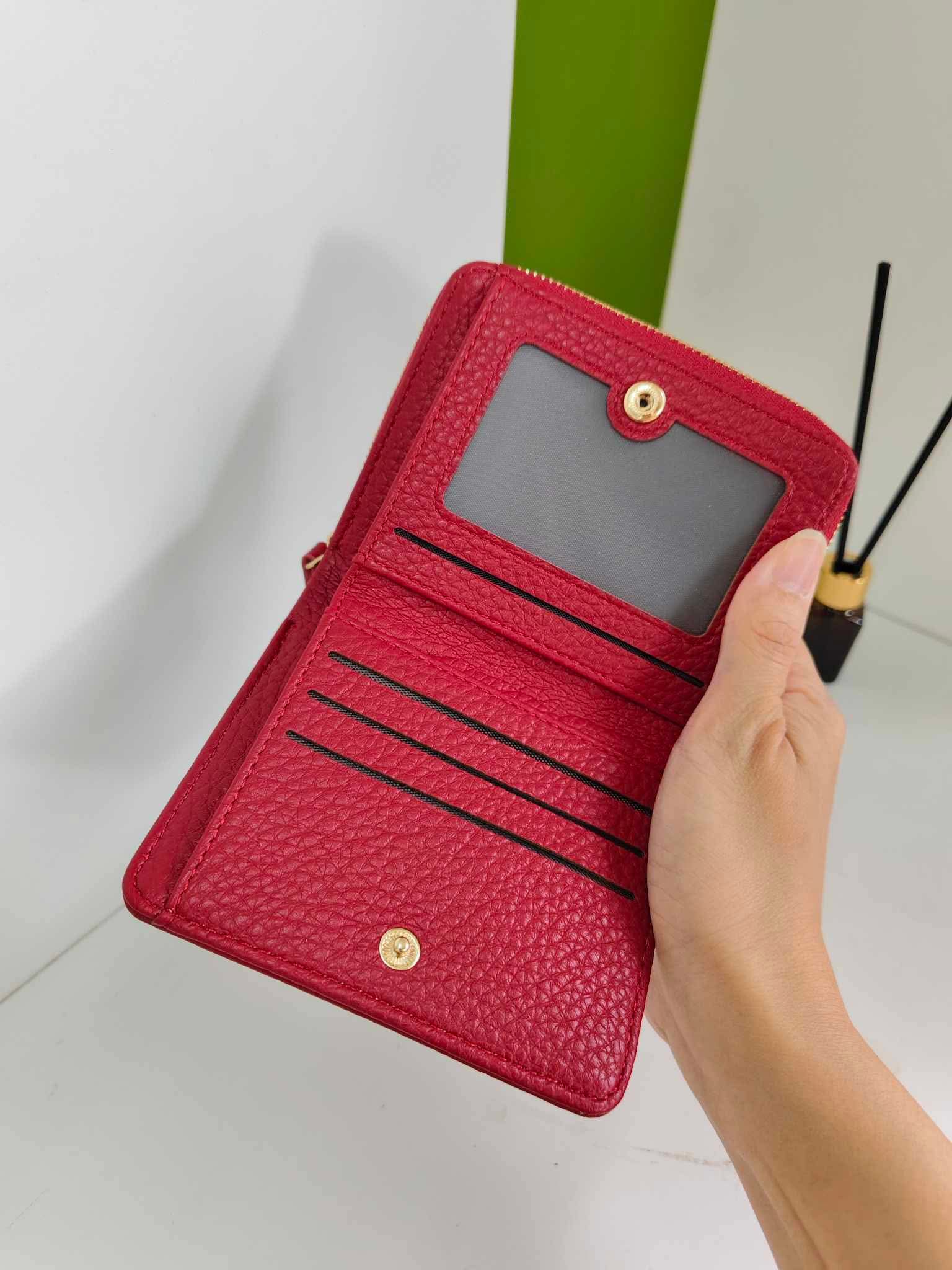 กระเป๋าสตางค์สั้น Golden & Co. มี 3 สี สีแดง สีครีม และ สีดำ สวยหรูตรงปกใส่แบงค์ใส่เหรียญใส่นามบัตร งานตัดเย็บสวยหนังนุ่ม PU มีชิปด้านหลังใส่ได้แบงค์พันพับและเก็บเหรียญ น่าใช้มากๆ พกพาง่าย เสริมบุคลิกได้เป็นอย่างดี ขนาด 4.3“ ความสูง 3.8“ ( รูปภาพสินค้าเป็นแค่สวนประกอบการเท่านั้น )